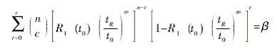 其中,n:進(jìn)行壽命試驗(yàn)樣品數(shù);r:在[[0,t]時(shí)間內(nèi)失效個(gè)數(shù);c:合格判定數(shù);to:任務(wù)時(shí)間;R1 (to):在規(guī)定任務(wù)時(shí)間內(nèi)的產(chǎn)品極限質(zhì)量,可記為LTPD;β:使用方風(fēng)險(xiǎn);m:形狀參數(shù);tR:可靠壽命。